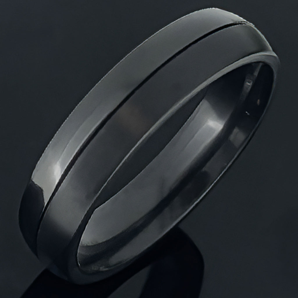 Good looking dome profile Black Zirconium ring with a twin finish, combining a satin and a polished finish.The black zirconium surface is very hard and is resistant to scratching and damage. Custom made in 3-4 weeks.