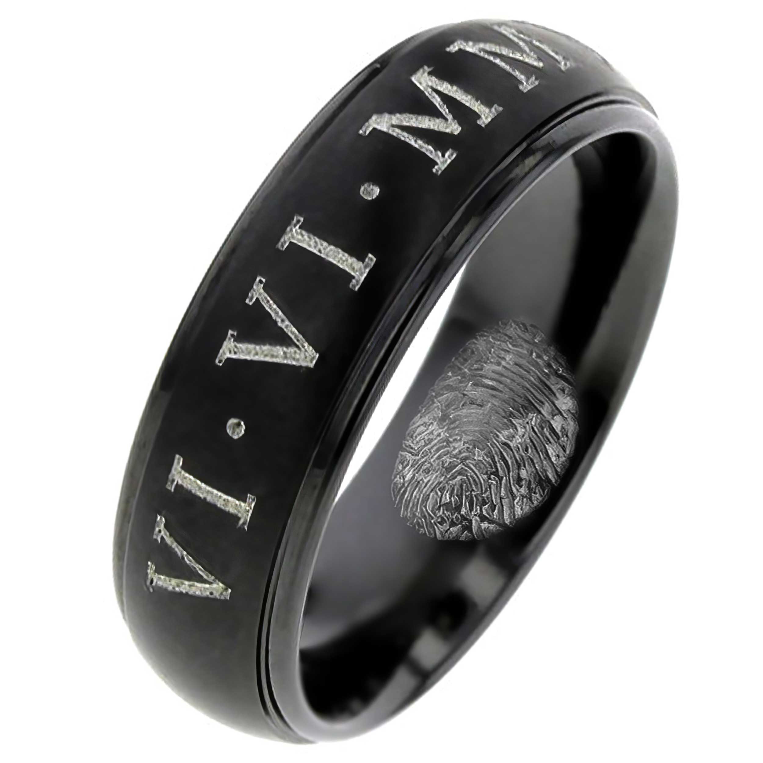Black Zirconium Fingerprint Ring with Custom Date