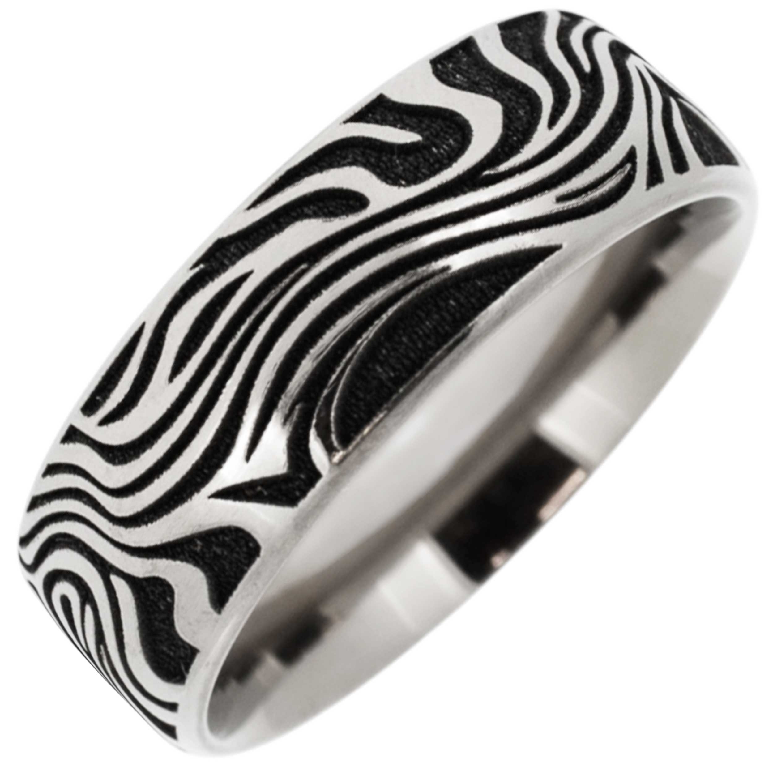 Damascus Wood Style Flat Polished Titanium Memorial Ring
