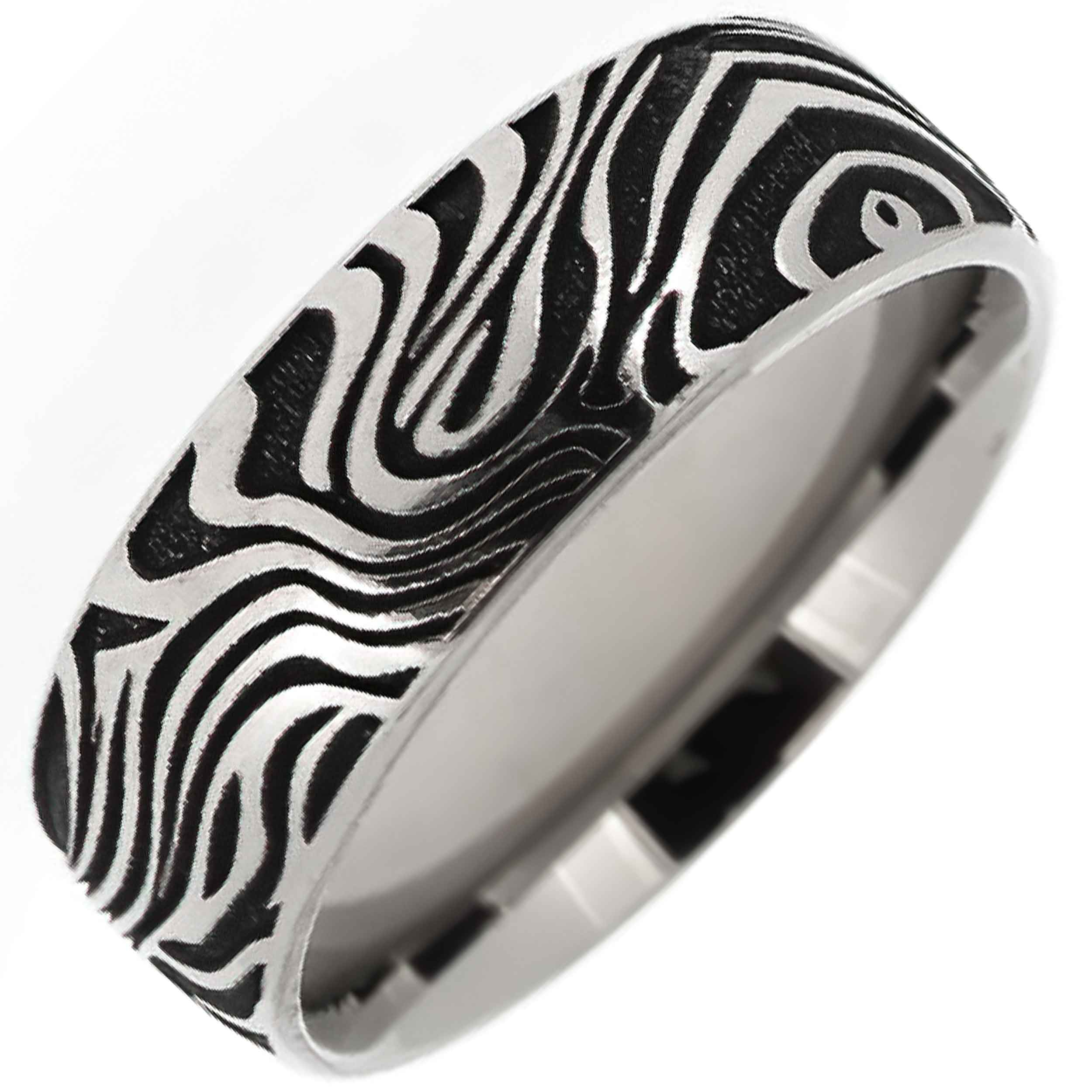 Damascus Wood Style Polished Titanium Flat Profile Ring
