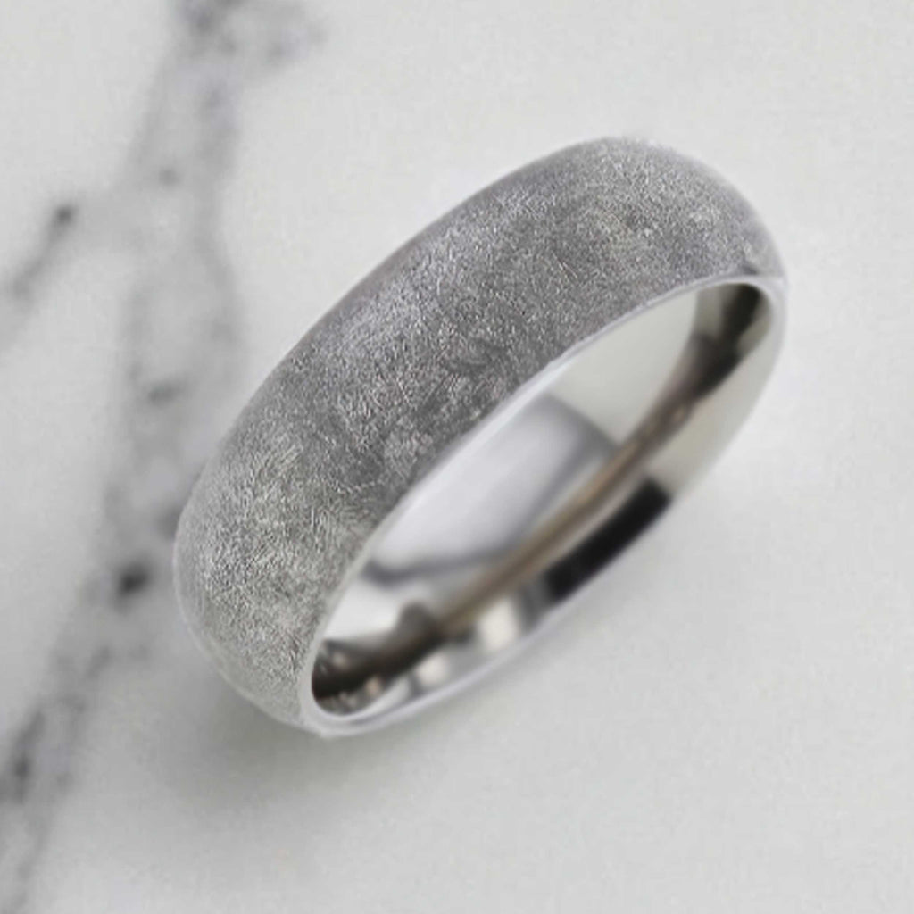 Dome-profile titanium ring featuring a heavy wire-brushed finish - a sleek yet understated design that blends style with simplicity. Expertly custom-made in the UK, with tester rings sent first to ensure the perfect fit.