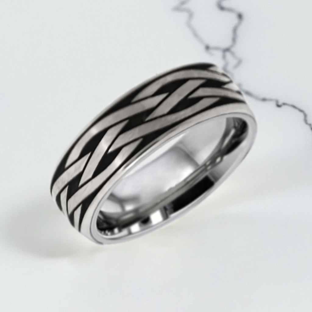 Flat-profile titanium ring with a striking Celtic design encircling the centre, handcrafted to your specifications within four weeks. To ensure the perfect fit, tester rings will be sent out in advance. This special piece allows you to keep the memory of a loved one close, delicately holding their ashes or a lock of their hair. The inclusion is sealed with resin for lasting protection and preservation, remaining hidden from view once complete. Personalise your memorial ring with a meaningful message engraved on the inner band. Please note that due to the ring's detailed construction, resizing in the future is not possible. Each ring is carefully made by hand, requiring four weeks for completion, and expedited orders are unfortunately unavailable. For further guidance, please see our Information Page