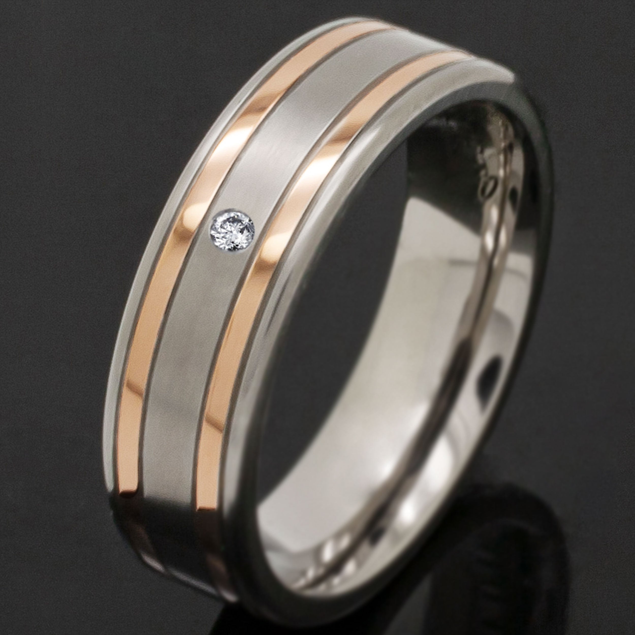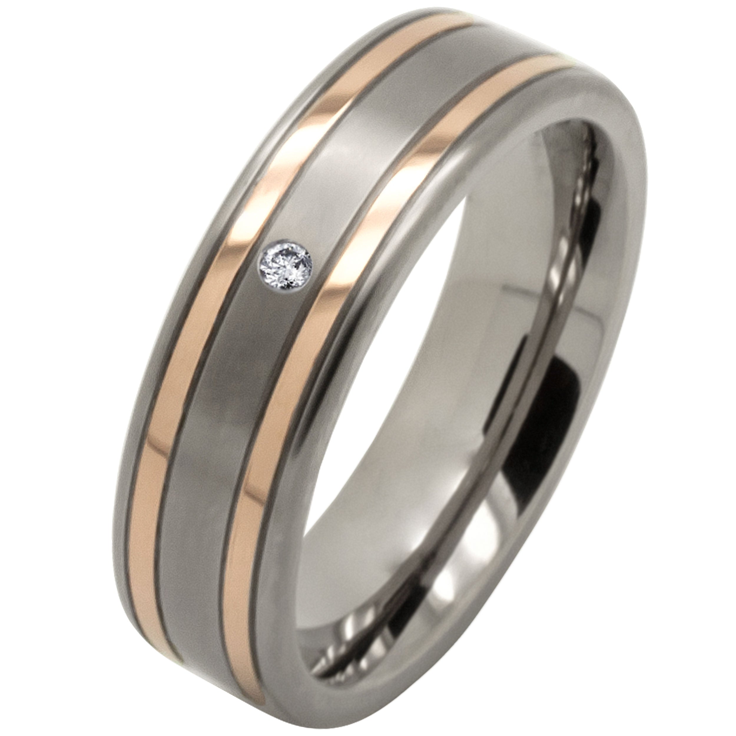 Rose Gold Inlaid Titanium Wedding Ring With Diamond