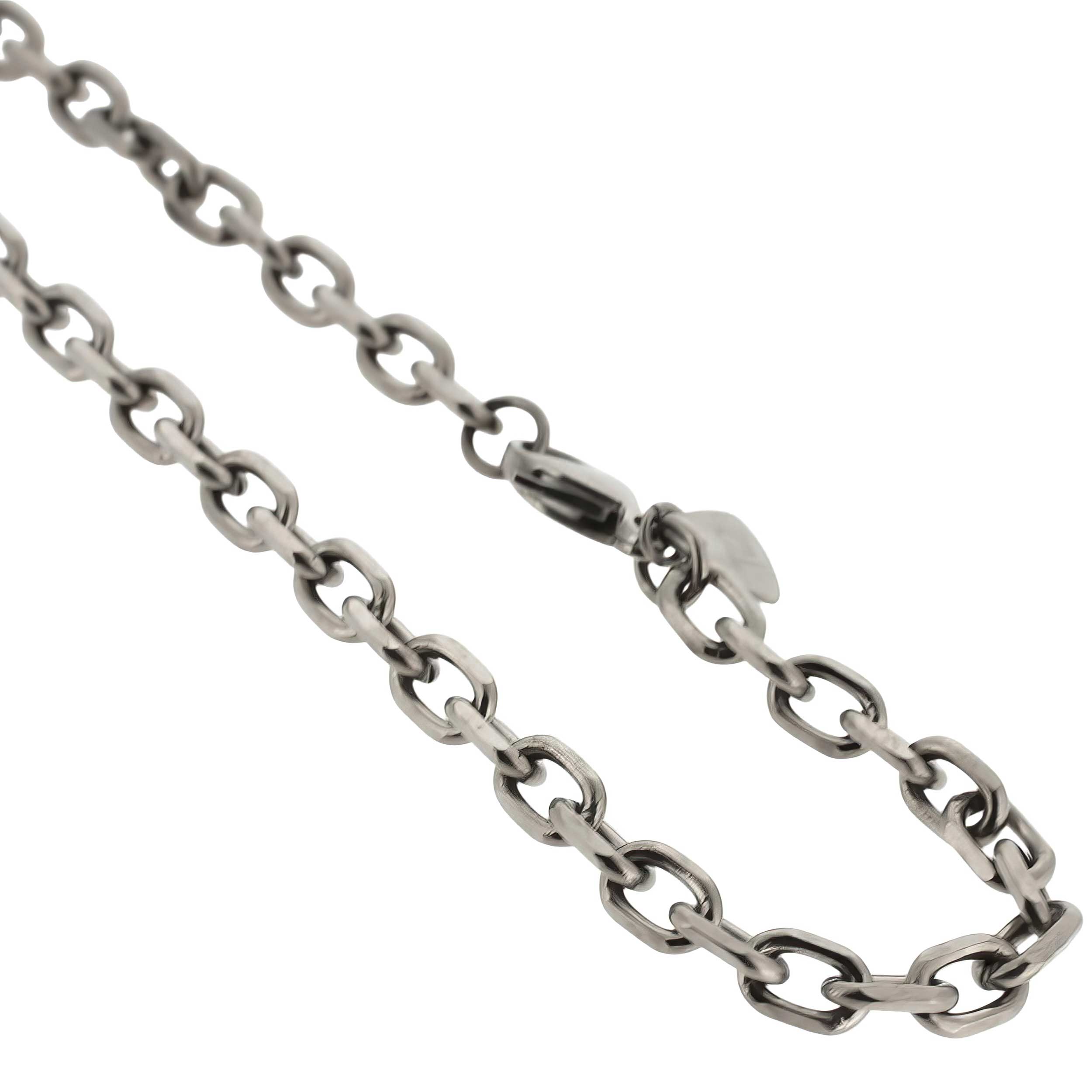 Part of our new Titanium Collection, our Trace Chain has faceted 5.5mm links which look great when worn alone or with others. The ultimate in cool and fastens with a lobster clasp.